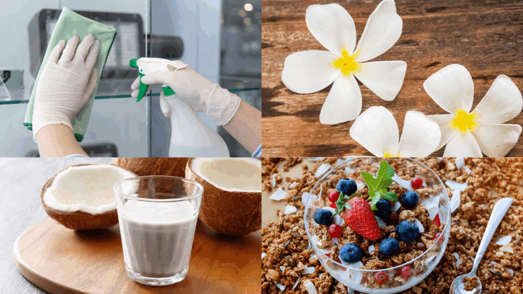 ココナッツミルク、海藻、ピーナッツバター、シリアル。